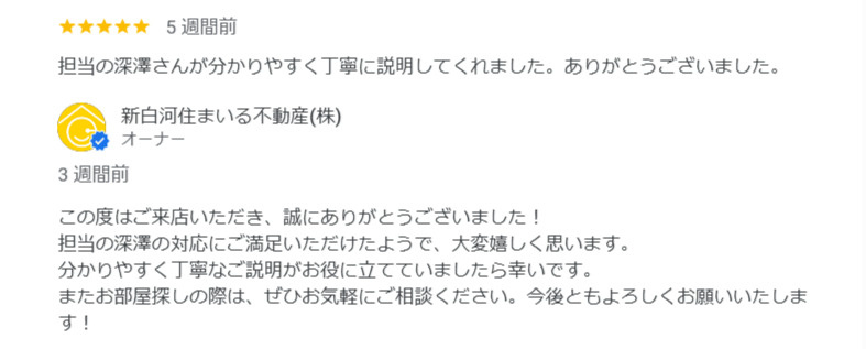 部屋探し関してはもちろんですが、素人には思い付かない観点からも建築物に関するアドバイスをいただき、最高なお部屋が見つかりました。