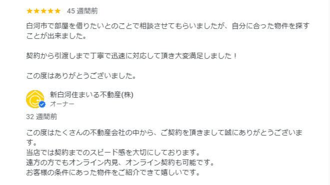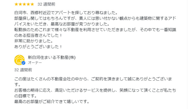 - 白河市で部屋を借りたいとのことで相談させてもらいましたが、自分に合った物件を探すことが出来ました。