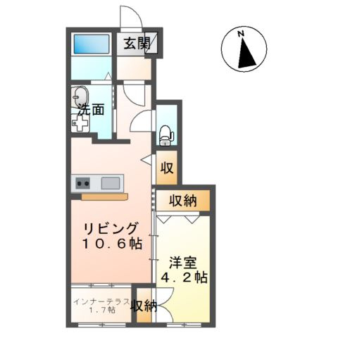 LDK 10.6帖 1室/洋室 4.2帖 1室 - 向き